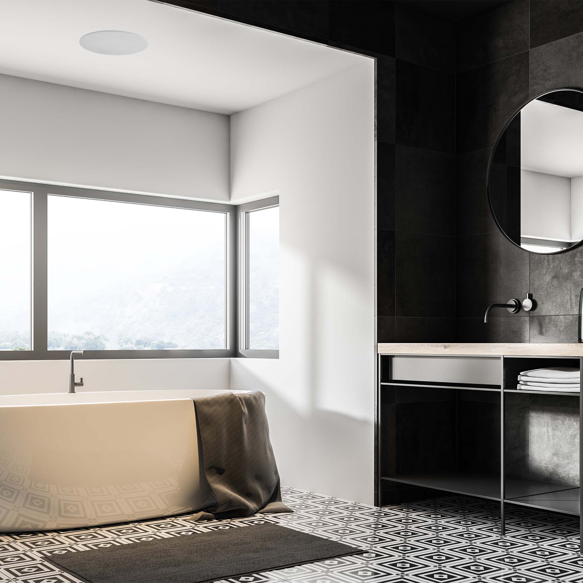 Our All-in-one Multi-Room Wi-Fi Ceiling Speakers are IP44 Rated Water-Resistant making them perfect for Bathrooms. Speaker combines an Amplifier, Wi-Fi Receiver, and a High-Quality water resistant speaker to offer you the ideal All-in-one Solution for your bathroom. Just add power.